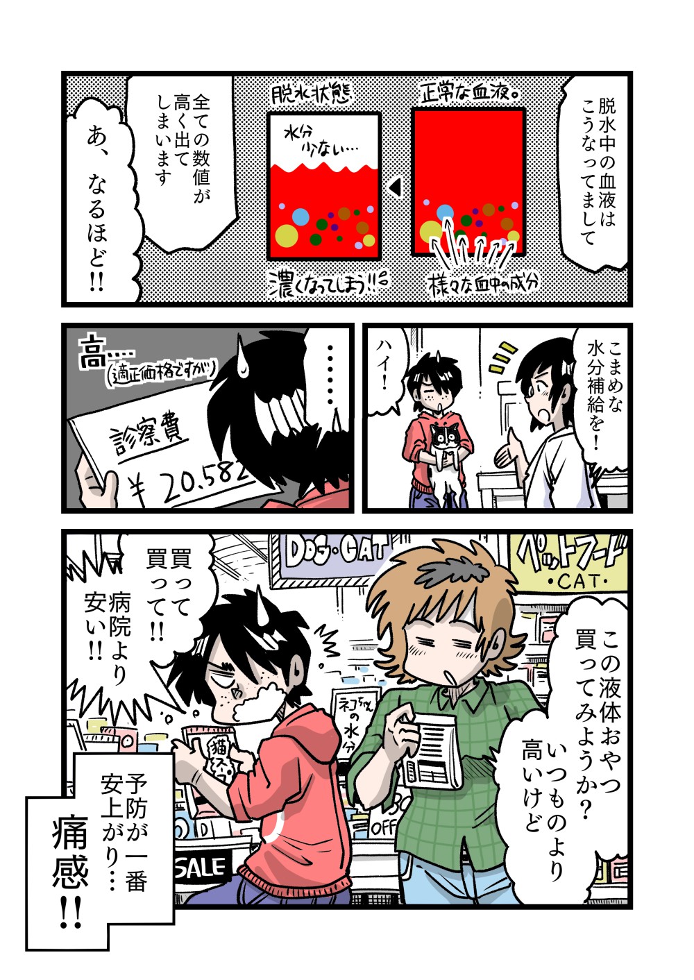 そこで獣医さんが一言、「脱水気味ですね」と仰いました。