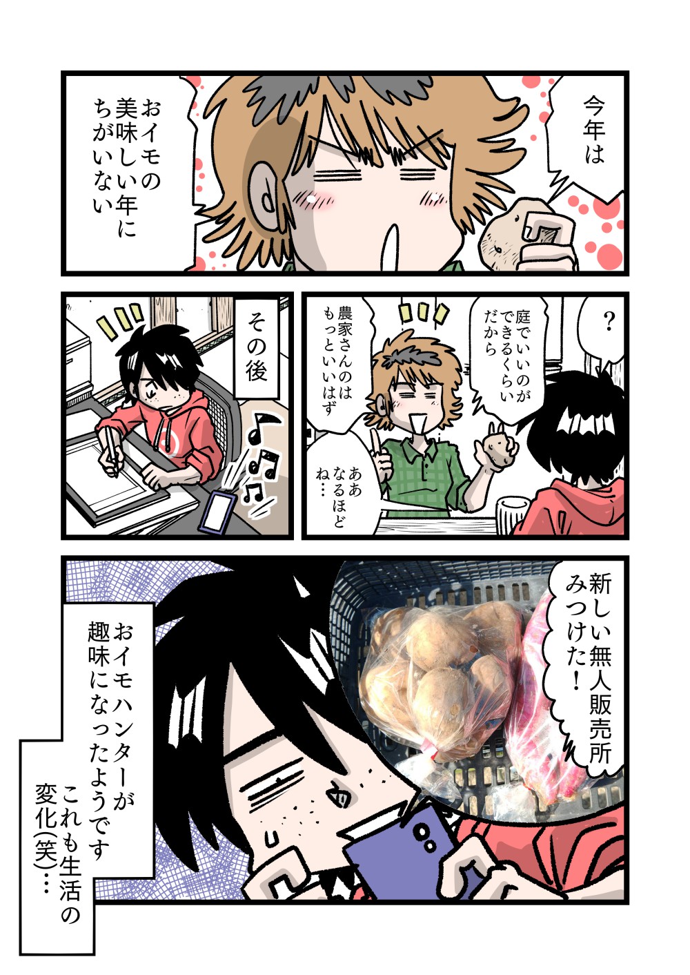 家人は通勤途中におイモを求めて無人販売所を探して歩く新しい趣味を得たようですw。食が変わるといろいろ連動しますね…。
